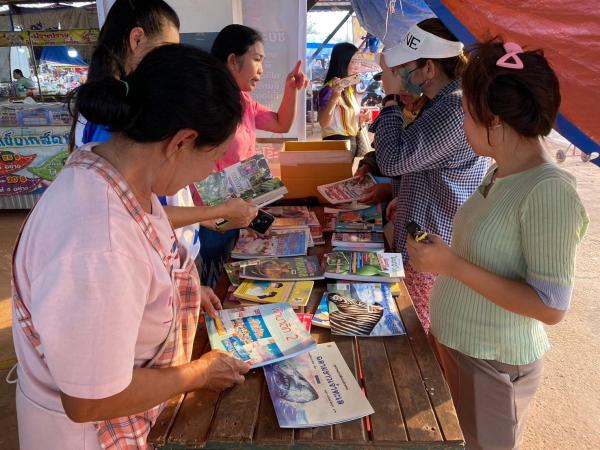 นำสื่อใส่ตะกร้าออกให้บริการแก่พ่อค้า แม่ค้า และผู้มาใช้บริการ