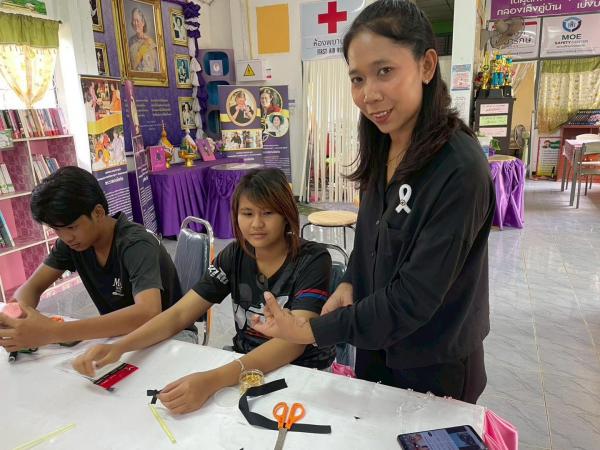 กิจกรรมส่งเสริมการอ่านการสอนการทำริบบิ้นไวอาลัย