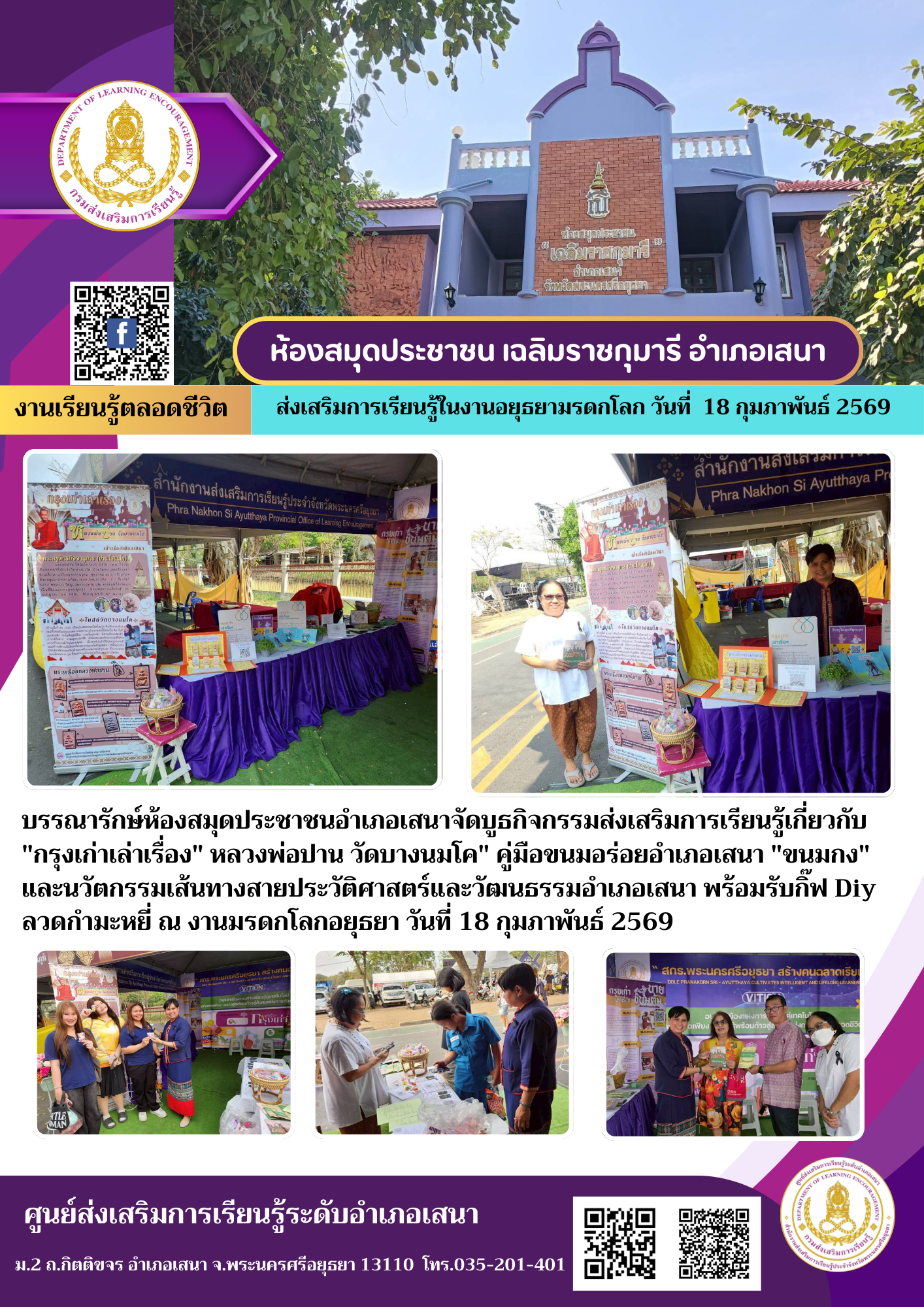 ส่งเสริมการเรียนรู้ในงานยอยศยิ่งฟ้าอยุธยามรดกโลก