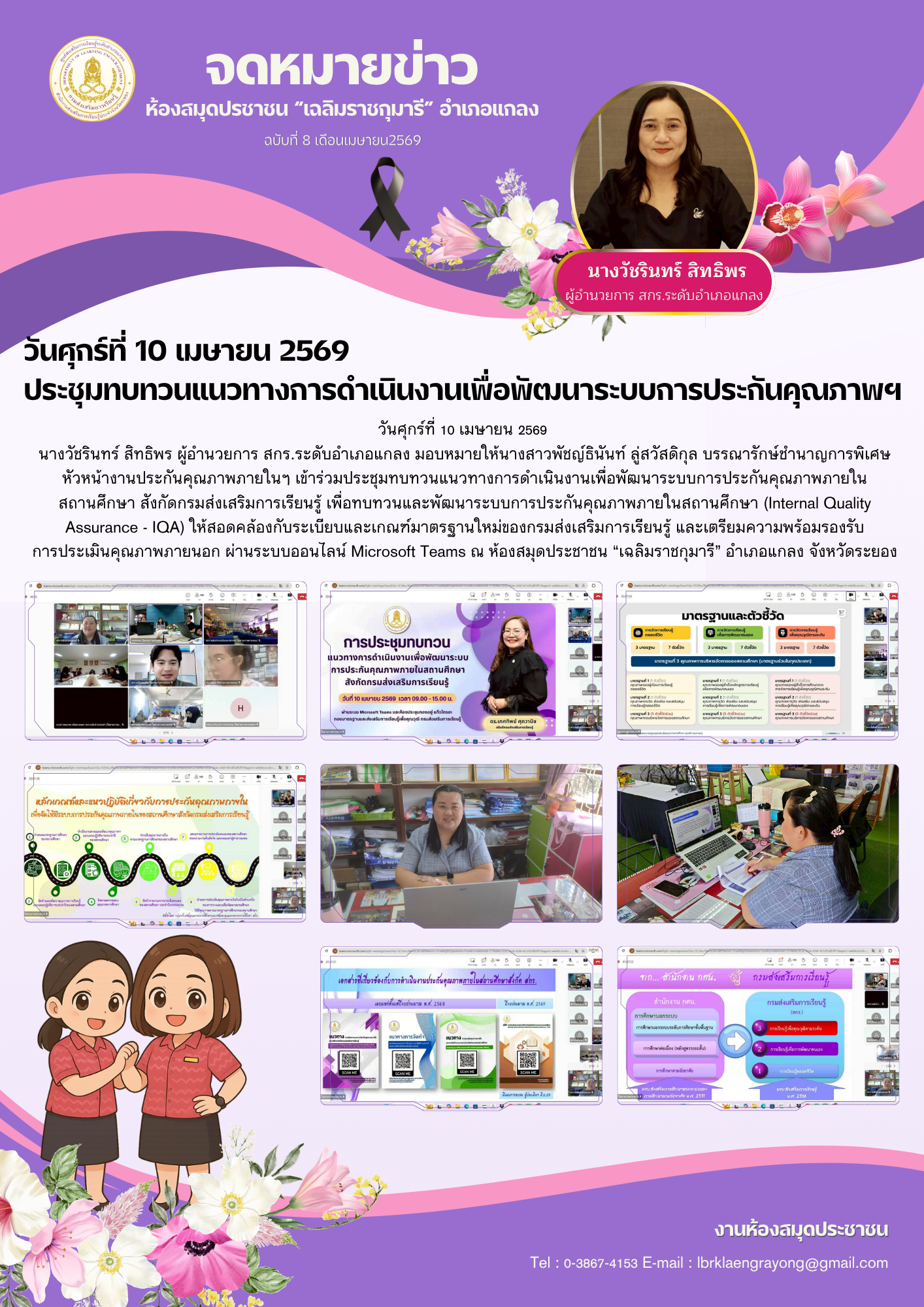 ประชุมทบทวนแนวทางการดำเนินงานเพื่อพัฒนาระบบการประกันคุณภาพภายในสถานศึกษา สังกัดกรมส่งเสริมการเรียนรู้