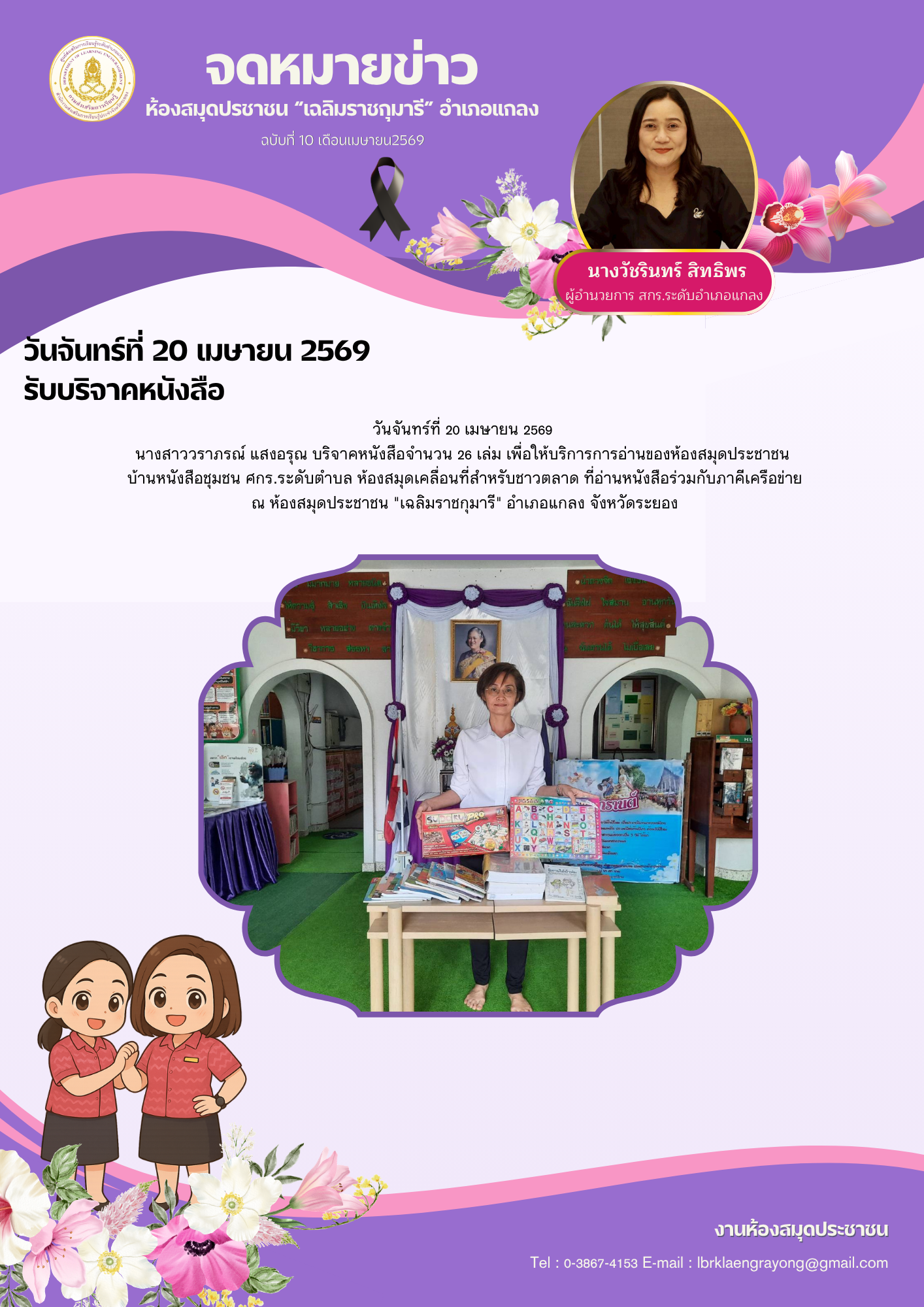 รับบริจาคหนังสือ (20 เม.ย.2569)