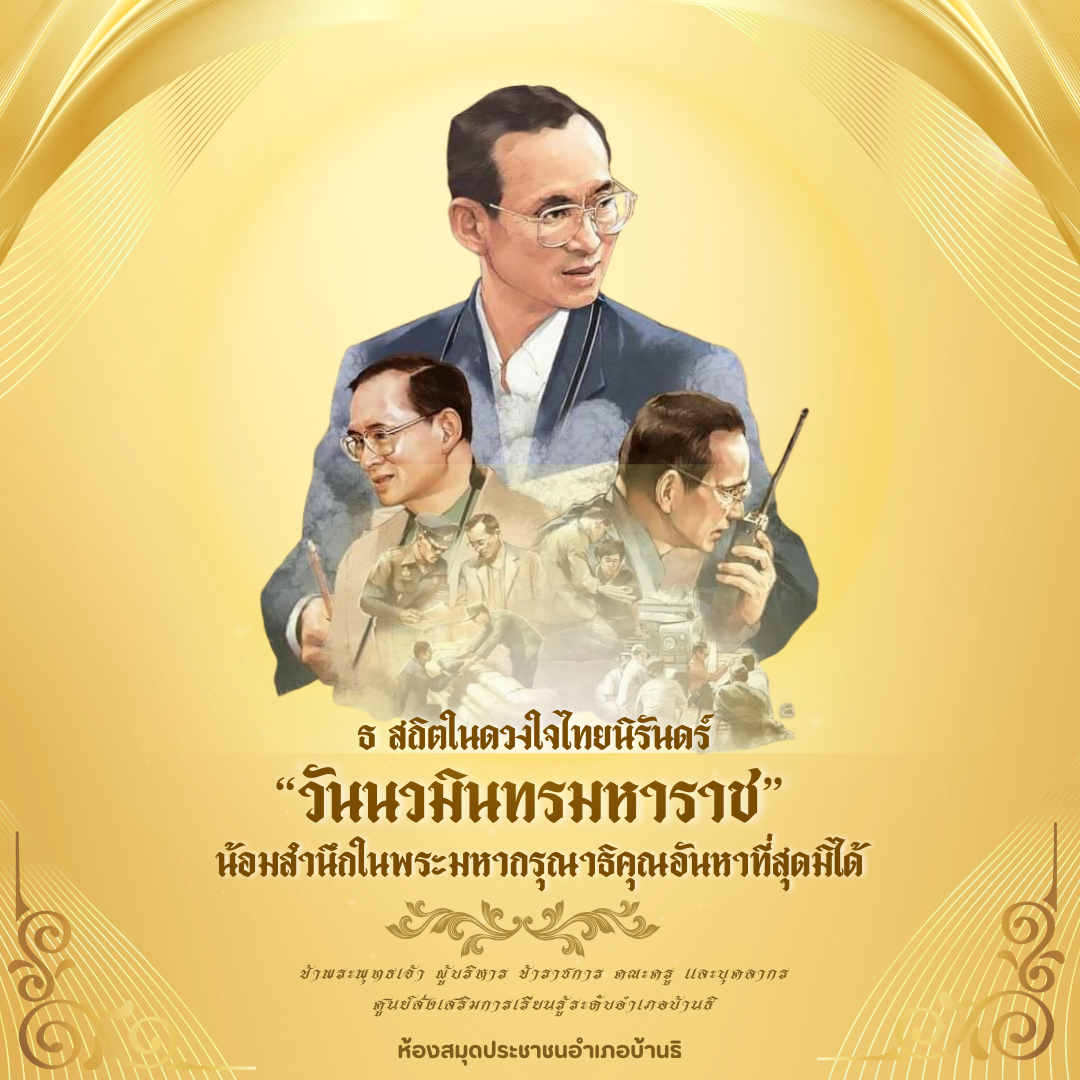 ห้องสมุดประชาชนอำเภอบ้านธิ ศูนย์ส่งเสริมการเรียนรู้ระดับอำเภอบ้านธิ จังหวัดลำพูน ขอเชิญร่วมทำแบบทดสอบ " วันนวมินทรมหาราช " วันคล้ายวันสวรรคต รัชกาลที่ ๙