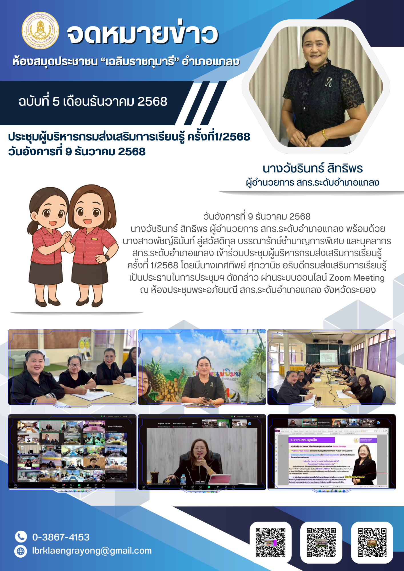 ประชุมผู้บริหารกรมส่งเสริมการเรียนรู้ ครั้งที่ 1/2568 ผ่านระบบออนไลน์