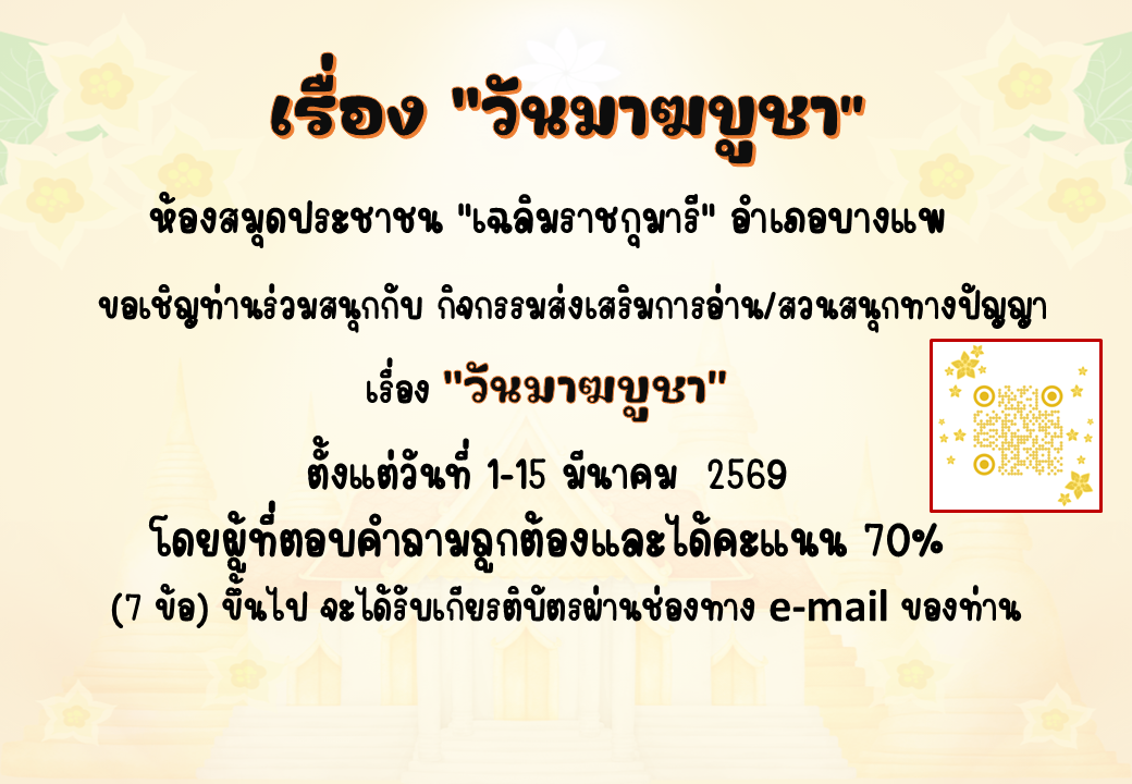 กิจกรรมส่งเสริมการอ่านออนไลน์ เรื่องวันมาฆบูชา 1-15 มีนาคม 2569