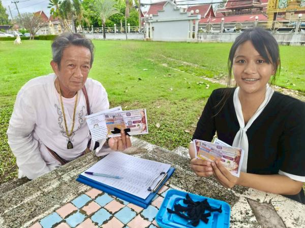 และนำบิ้นเเครื่องหมายแสดงความไว้อาลัย แด่สมเด็จพระนางเจ้าสิริกิติ์ พระบรมราชินีนาถ พระบรมราชชนนีพันปีหลวง ไปแจกให้กับประชาชน