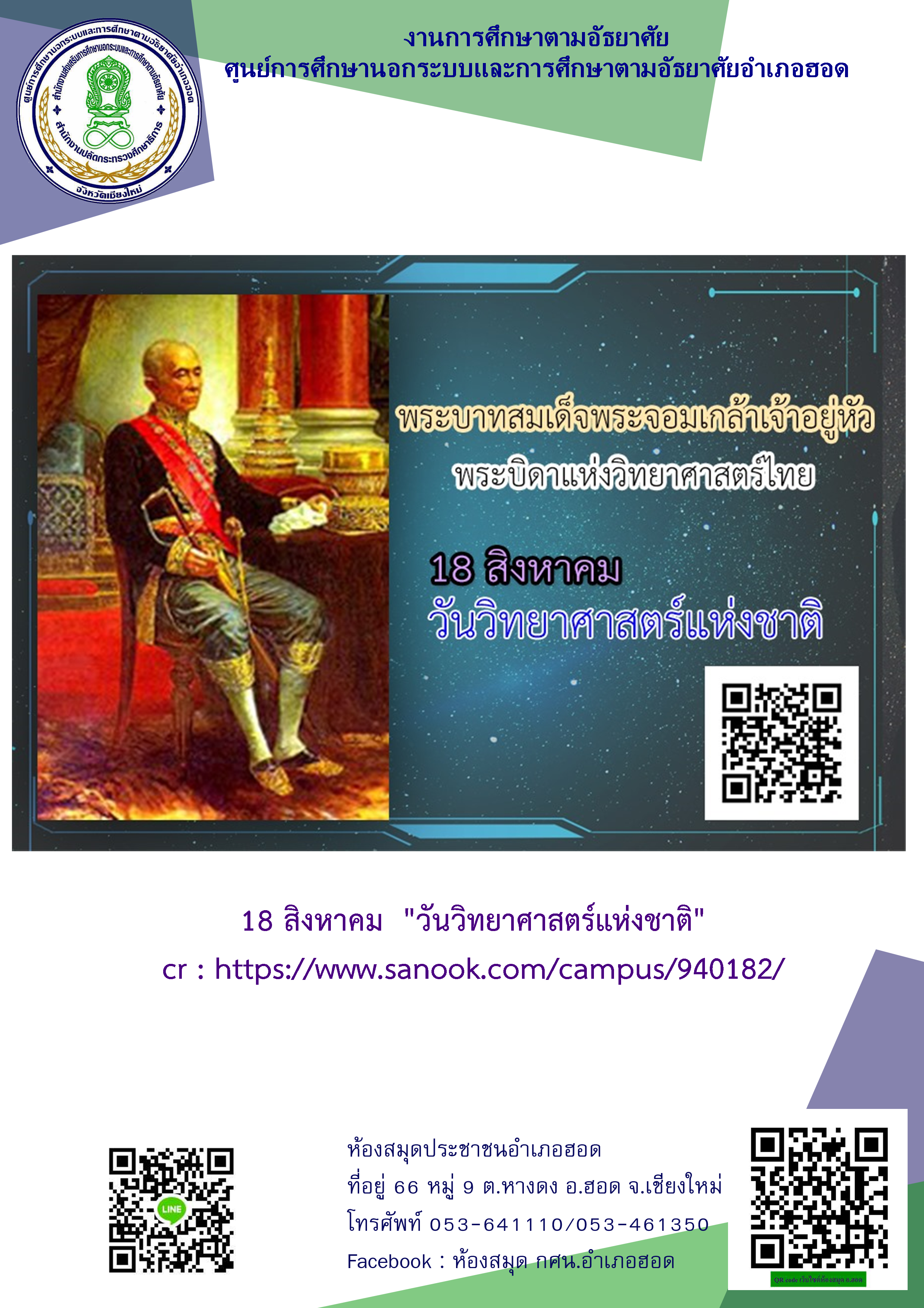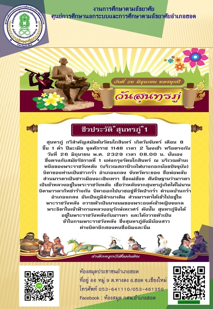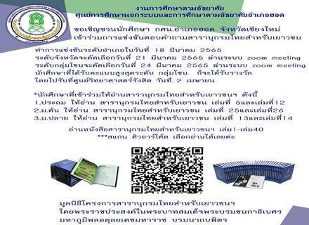ขอเชิญชวนนักศึกษา กศน.อำเภอฮอด จังหวัดเชียงใหม่ เข้าร่วมการแข่งขันตอบคำถามสารานุกรมไทยสำหรับเยาวชน :