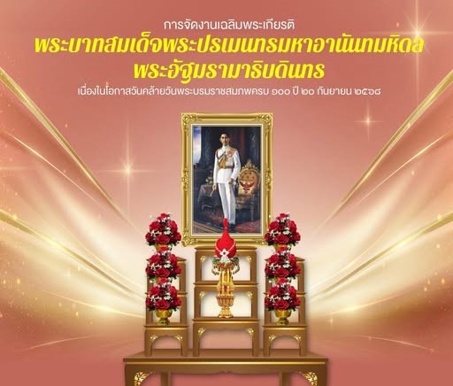 ขอเชิญชวนหน่วยงานภาครัฐ ภาคเอกชน และประชาชน จัดตั้งโต๊ะหมู่ประดิษฐานพระบรมสาทิสลักษณ์พระบาทสมเด็จพระปรเมนทรมหาอานันทมหิดล พระอัฐมรามาธิบดินทร เนื่องในโอกาสวันคล้ายวันพระบรมราชสมภพครบ 100 ปี 20 กันยายน 2568
