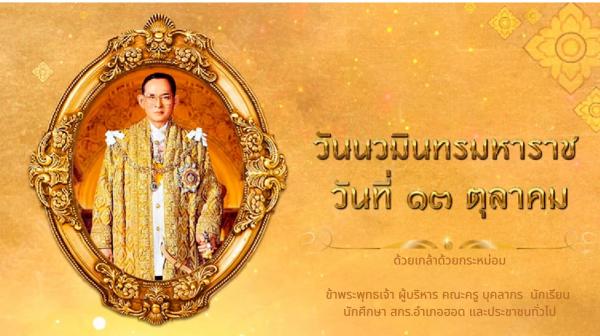 13 ตุลาคม วันนวมินทรมหาราช น้อมรำลึกถึงพระมหากรุณาธิคุณอย่างหาที่สุดมิได้ในพระบาทสมเด็จพระบรมชนกาธิเบศร มหาภูมิพลอดุลยเดชมหาราช บรมนาถบพิตร ด้วยเกล้าด้วยกระหม่อม ขอเดชะ ข้าพระพุทธเจ้า ผู้บริหาร ครู และ บุคลากร ศูนย์ส่งเสริมการเรียนรู้ระดับอำเภอฮอด