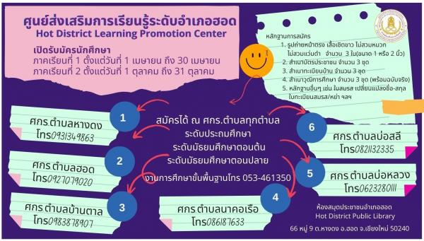 ศูนย์ส่งเสริมการเรียนรู้ระดับอำเภอฮอด สถานศึกษาปลอดบุหรี่ บุหรี่ไฟฟ้า และสิ่งเสพติดแบบ 100 %