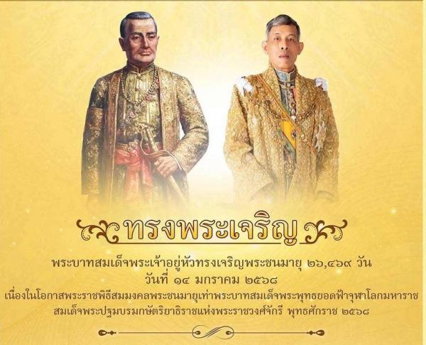 ๑๔ มกราคม ๒๕๖๘ เป็นโอกาสมหามงคลสมัยพิเศษ เนื่องจากเป็นวันที่ พระบาทสมเด็จพระเจ้าอยู่หัว ทรงเจริญพระชนมายุได้ ๒๖,๔๖๙ วัน เป็นสมมงคลพระชนมายุเท่าพระบาทสมเด็จพระพุทธยอดฟ้าจุฬาโลกมหาราช สมเด็จพระปฐมบรมกษัตริยาธิราชแห่งพระราชวงศ์จักรี