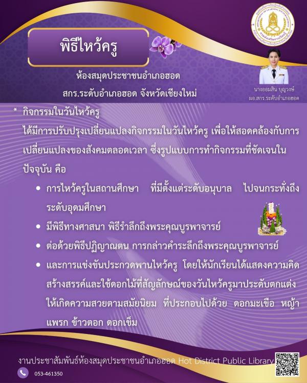 ๒๐ ธันวาคม พุทธศักราช ๒๕๖๔ ห้องสมุดประชาชนอำเภอฮอด