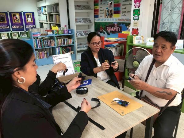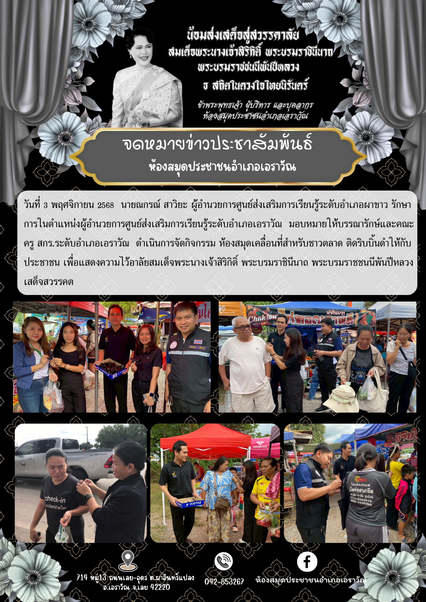 กิจกรรม ห้องสมุดเคลื่อนที่สำหรับชาวตลาด ติดริบบิ้นดำให้กับประชาชน เพื่อแสดงความไว้อาลัยสมเด็จพระนางเจ้าสิริกิติ์ พระบรมราชินีนาถ พระบรมราชชนนีพันปีหลวง เสด็จสวรรคต